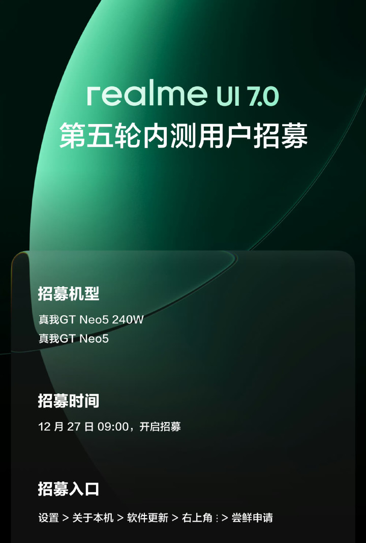 除了GT5,真我的产品经理这次也透了个底,GT Neo5系列的内测通道已经打开了。